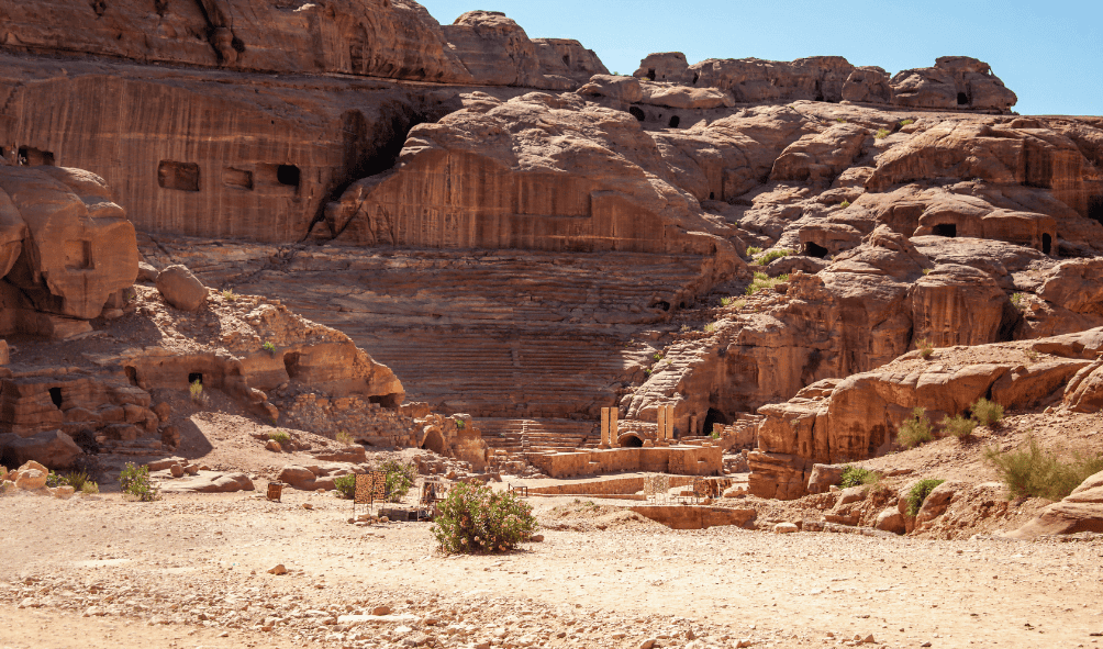 Petra, located in the Jordan desert, is the site of an ancient city dating back to as early as the 5th century BC when Nabataean nomads settled there. Located in the south part of Jordan, the city was prosperous due to its convenient location along trade routes and many buildings were carved out of blushing pink sandstone, earning it the name “The Rose City”.