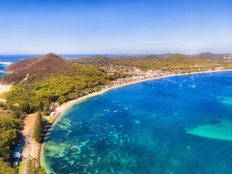 Located in the heart of Port Stephens, about 2.5 hours north of Sydney, Nelson Bay is a coastal paradise perfect for a day trip filled with sun, sea, and adventure. Known for its crystal-clear waters and laid-back vibe, the area offers everything from dolphin-watching cruises and snorkeling in Fly Point Marine Reserve to sandboarding on the towering dunes of Stockton Beach.