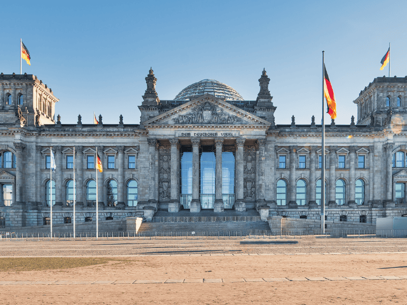 The Reichstag Building is the home of the German Parliament and is a particularly famous building in Berlin. It has a huge glass domed roof and terrace area that are very popular with visitors to the city for the remarkable architecture and great views of Berlin.