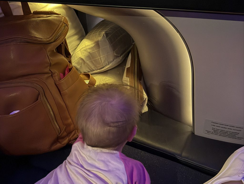 Flying long haul with a baby is intense in a physical way. There’s a lot of holding, feeding, rocking, and being “on” the entire time. But emotionally? Babies are often surprisingly adaptable. They sleep more, don’t care where they are, and don’t mind being contained as long as you’re nearby.