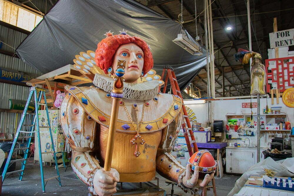 If you’re not able to be in New Orleans for the festival itself, then the only way to get a sense for the grandeur and fun of the carnival is to see the parade floats and props being made.