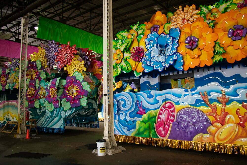 If you are lucky enough to visit just after Mardi Gras, you might see workers cleaning out the floats and giving out beads and masks to tourists wandering through the warehouses.