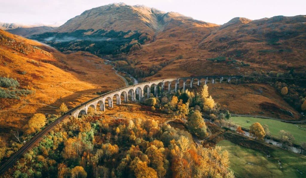 This iconic structure spans a 1,000-foot stretch and stands 100 feet above the ground. The viaduct consists of 21 arches, each spanning 50 feet. It’s especially notable for being the longest concrete railway bridge in Scotland and one of the first major structures in the world to use mass concrete construction.