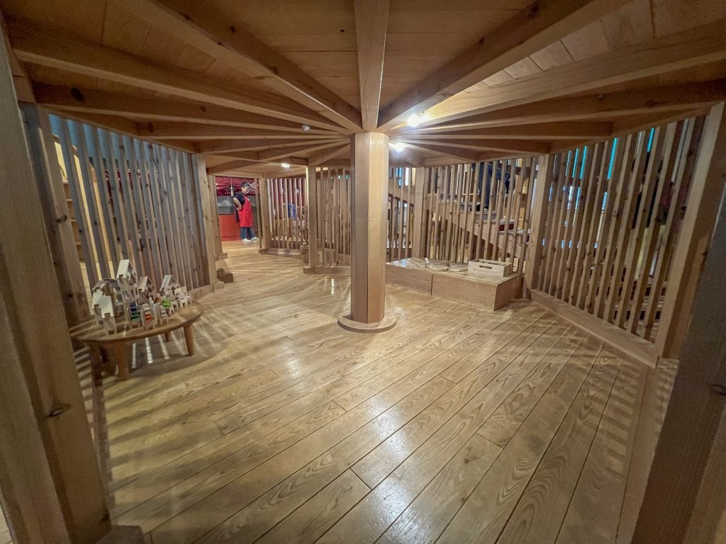 This was our favourite section of the museum and definitely one of the main reasons I believe the Tokyo Toy Museum is worth visiting. The toy forest is a giant wooden adventure playground full of activities to explore. There are little alcoves with toys to play with, a large two-level structure for kids to practice climbing up and down and a ball pit full of wooden balls that our daughter was keen to dive right into. You can spend as long as you like in this section of the museum and it is a great chance for your kids to play with other visitors including groups of Japanese school kids that drop in.