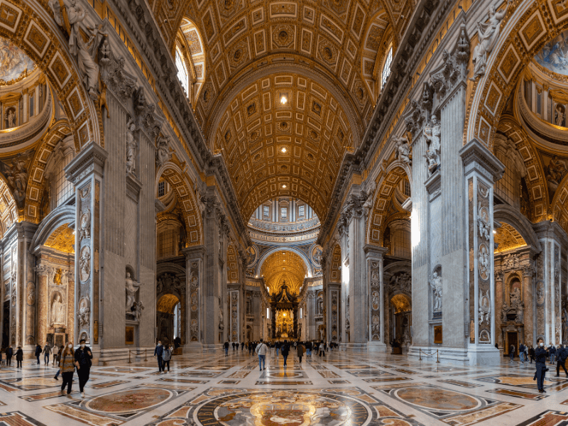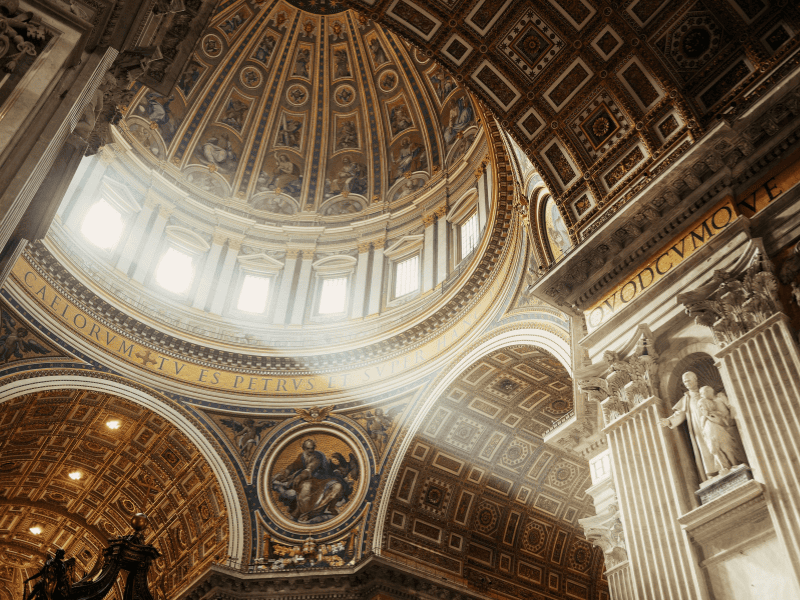 When you get inside St Peter’s Basilica, you’ll immediately be amazed by the spectacular architecture and artwork that surrounds you. The golden arched ceiling will have you craning your neck looking upwards to marvel at the beautiful designs. Take your time exploring every corner of the Basilica as there are some very famous artworks, tombs and sculptures such as Michelangelo’s Pieta and the tomb of St John Paul II, one of the church’s most well known Popes of recent times.